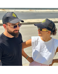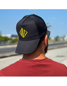 Jockey Hat with Embroidered gold touch logo & mesh- Black