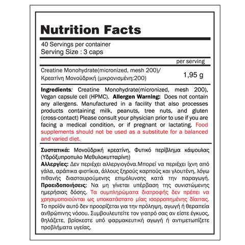 Creatine monohydrate is the most common type of creatine, in supplements, as well as the most researched. Lots of scientific evidence suggest that creatine monohydrate is a substance that works and many people that use it for the past 40 years, confirm those claims with the results they have seen in their bodies. Creatine is essentially an amine (literally a nitrogenous amino acid) that is naturally produced in our bodies by the amino acids: glycine, methionine and arginine (95% of our body’s creatine is stored in muscle cells). Moreover, creatine is also present in foods such as meat & seafood.