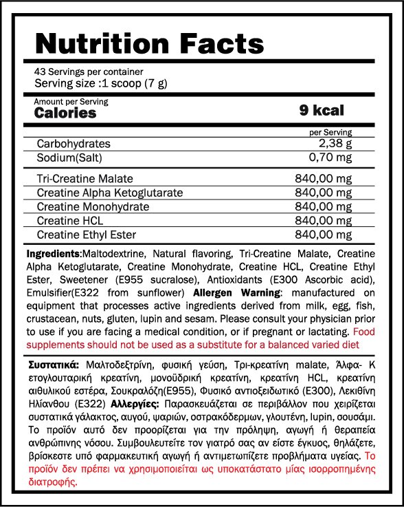 Our blend of 5 different types of creatine is designed to improve absorption and enhance creatine’s ability to pass along cell membranes. Having higher concentration of creatine in the muscle, strength power and performance are significantly enhanced.