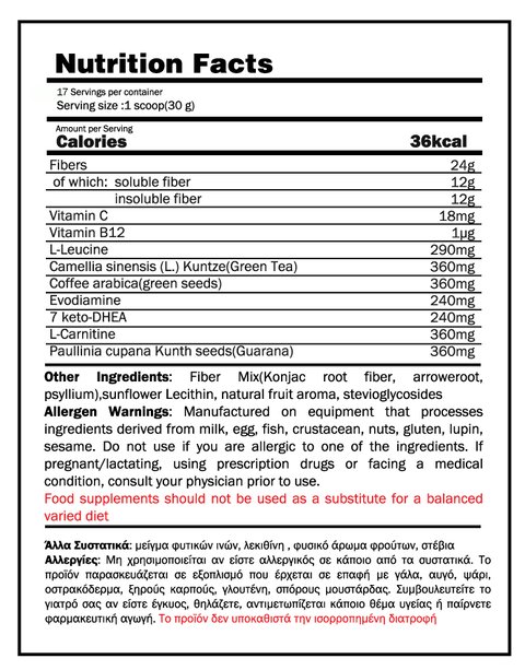 When you exercise and follow a low calories diet at the same time, you are facing the risk of breaking down valuable muscle tissue instead of burning fat. However, Diet X ensures that no catabolism of muscle will occur, as it contains 7 keto-DHEA which accelerates the body fat decomposition process, allowing your body to use fat as an energy source. Furthermore, Diet X contains L-leucine, which helps build more muscle and maintain the body in an anabolic state. Finally, vitamin B12 and various sources of caffeine provide more energy to the body, fight fatigue and helps you train harder.