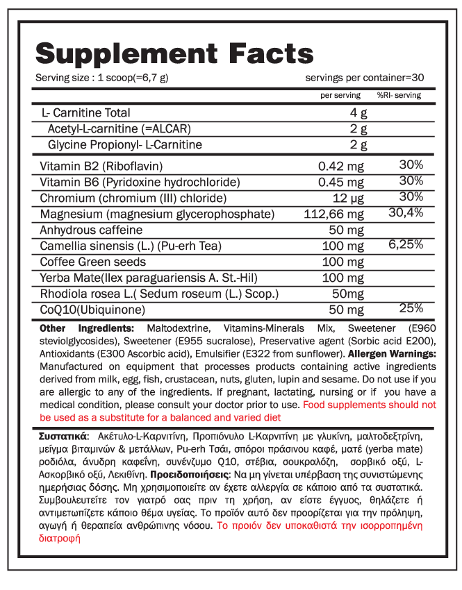 L- carnitine mobilizes fatty acid from where they are stored(e.g. fatty cells) to move into the inner mitochondrial matrix. Once there, they can be used as fuel to generate adenosine triphosphate, or ATP. That means that L-carnitine not only increases the rate at which you burn fat, it can also provide a significant short-term increase in energy output, allowing you to train harder with greater endurance. Moreover it boosts the metabolism of carbs you consume from food and has antioxidant properties that help protect against free radical damage.