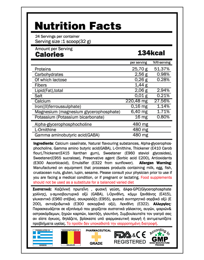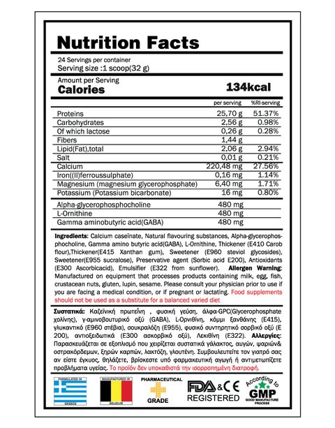 Night protein, as stated by its name, should be consumed as a bedtime snack, in order to receive the maximum impact. Dissolve 1 scoop (=32 g), in a glass of hot or cold water, shake rapidly and drink 1 hour before sleep. Alternatively you can use milk/yogurt to mix your night protein if you prefer.