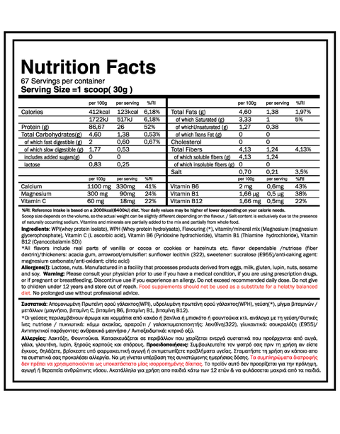 85% Whey Isolate (WPI 95) + 10% Whey Ηydrolyzed (WPH 86).