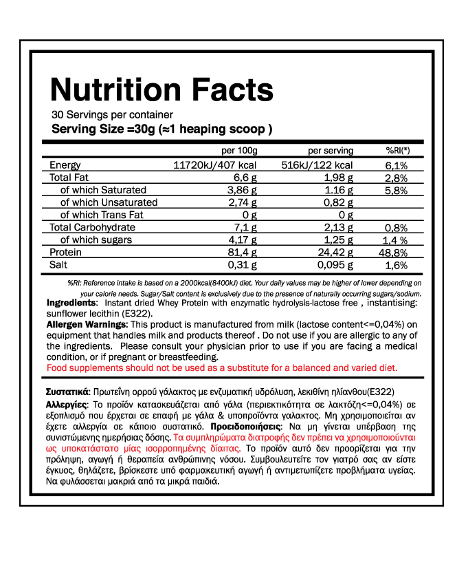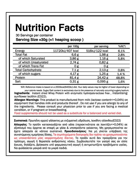 WPC 80+ is a pure blend of whey protein with Zero additives, flavors, sugars and fats. Whey protein 80+ is separated of the liquid produced during the cheese making process, by micro-filtration techniques. This process ensures that the protein stays intact and pure. A high protein content (25g of protein/scoop) along with some highly bioactive peptides found in WPC 80+, makes it a superfood for building lean muscle, assisting muscle recovery after exercise and promoting fat loss.