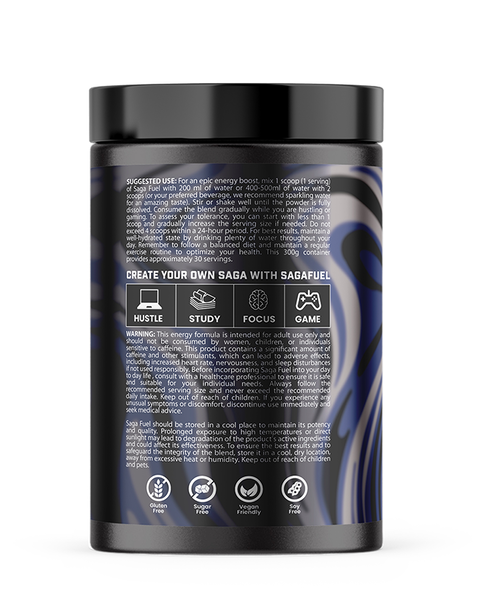 Ο κύριος στόχος του sagafuel είναι να σου δώσει μοναδική συγκέντρωση, ενέργεια και συνέπεια σε κάθε δραστηριότητα που συμμετέχεις, με το μοναδικό μείγμα νοοτροπικών, καφεΐνης και μοναδικών συστατικών που δεν μπορείς να βρείς πουθενά αλλού.