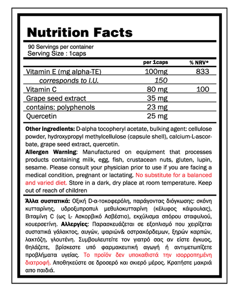 Εξαιρετικά απορροφήσιμη Βιταμίνη Ε, σε συνδυασμό με βιταμίνη C και βιοφλαβονοειδή