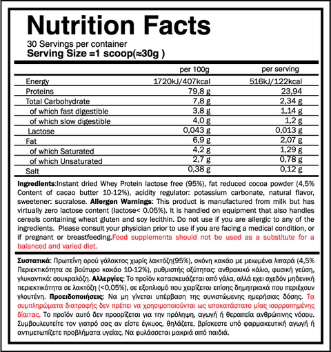 WPC 80+ is a pure blend of whey protein with Zero additives, flavors, sugars and fats. Whey protein 80+ is separated of the liquid produced during the cheese making process, by micro-filtration techniques. This process ensures that the protein stays intact and pure. A high protein content (25g of protein/scoop) along with some highly bioactive peptides found in WPC 80+, makes it a superfood for building lean muscle, assisting muscle recovery after exercise and promoting fat loss.